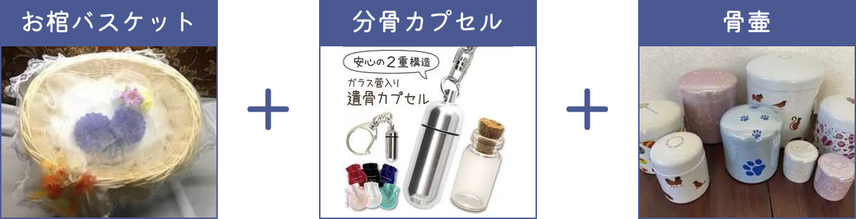 (カゴ棺 + 遺骨カプセル付 + デザイン骨壷付)